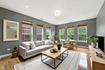 Welcome home to this sunlit 2-bedroom, 1.5-bath penthouse condo-just steps from Lake Michigan and minutes from downtown! Perched on the top floor of a well-maintained building, this residence boasts an open-concept layout ideal for entertaining. The bright and spacious living room sits at the front of the unit, flowing seamlessly into a combined dining area and open kitchen, creating the perfect setup for gatherings. West-facing windows flood the space with natural light, highlighting the rich hardwood floors throughout. Enjoy upgraded light fixtures, a Samsung in-unit washer/dryer, and a custom-designed California Closets system that maximizes function and style. Step out onto your private balcony for beautiful skyline views and a breath of fresh air. Located on a quiet, tree-lined street, you'll love the easy access to public transit, scenic parks and trails, and local favorites like Chicago's Home of Chicken & Waffles. Just 15 minutes from downtown, this home is perfect as a city escape, full-time residence, or smart investment opportunity.